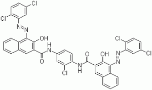 InChI: InChI = 1 / C40H23Cl5N6O4 / c41-22-9-12-29 (43) 33 (17-22) 48-50-35-25-7-3-1-5-20 (25) 15-27 ( 37 (35) 52) 39 (54) 46-24-11-14-32 (31 (45) 19-24) 47-40 (55) 28-16-21-6-2-4-8-26 ( 21) 36 (38 (28) 53) 51-49-34-18-23 (42) 10-13-30 (34) 44 / h1-19,52-53 ਐਚ, (ਐਚ, 46,54) (ਐਚ, 47,55)